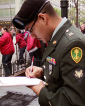 "אני כותב כדי להביע את תמיכתי בביסוס של 'יום נוער למען זכויות אדם' בעיר לוס אנג'לס. אני מברך על מאמצי הארגון שלכם לערב את הנוער של לוס אנג'לס בדיון על 'ההכרזה לכל באי עולם בדבר זכויות אדם'. תודה לכם על העבודה שאתם עושים כדי לקדם שלום, סובלנות ורוח של שיתוף פעולה ברחבי העולם בזמנים אלה של סכסוך וקונפליקט." - חבר מועצה, מחוז רביעי, לוס אנג'לס